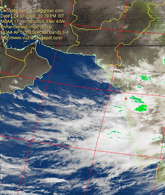 All weather satellite images are decoded with homebrew receiver. Setup using Turnstile Cross Dipole homebrew antenna, Pentium-3 500MHZ Computer with WIN-XP & WXTOIMG program. Click on images to have full size view. Location:- Mumbai-INDIA